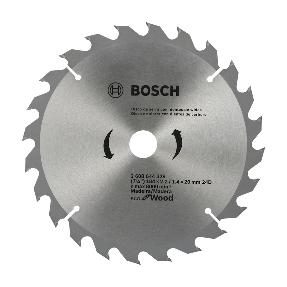 El Disco de Sierra Circular Ecoline para madera es la mejor opción para uso en construcción, ya que proporciona seguridad, cortes rápidos y excelente durabilidad en cortes de madera. Sus dientes de carburo de tungsteno de calidad con geometría ATB (Albelte Top Bebel) permiten una mayor redondez de la hoja y cortes rápidos, mientras que su base de acero templado dimensionalmente estable reduce significativamente la deformación del disco. Además, las ranuras de expansión reducen la vibración durante el uso, lo que amortigua el ruido y reduce el desarrollo de calor. Puedes usar estas hojas de sierra en todo tipo de madera, son compatibles con sierras circulares manuales, sierras de inglete, sierras de inglete telescópicas y sierras de mesa (según el diámetro del disco y el eje). Este Disco de sierra circular de Bosch tiene un diámetro de 184mm, su orificio central es de 20mm, su espesor es de 1,4mm, tiene 24 dientes y su rpm máximo es de 8000.