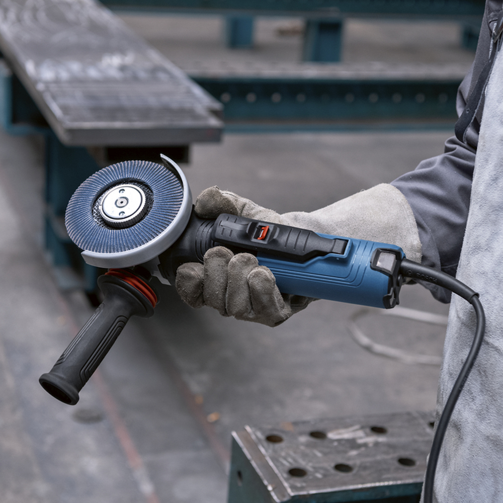 Características: Proteccion contra rearranque y sistema de Electronica Constante. Embrague electronico KickBack Stop: si detecta un bloqueo, desconecta la maquina de inmediato. Empunadura adicional Vibration Control con un 40 % menos de vibraciones. Caperuza protectora con seguro contra torsion. Limitador de la corriente de arranque. El cabezal del engranaje puede girarse en pasos de 90¿¿. Datos Técnicos : Empuñadura auxiliar Vibratorio Control: un 50% menos vibración (norma europea EN 50144). Sistema Soft Start: la amoladora sólo alcanza su rotación máxima 2 a 3 segundos después de ser accionada.