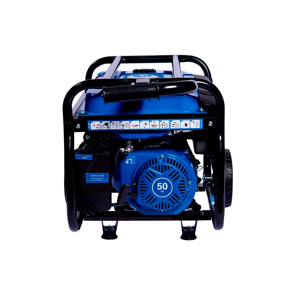 Equipado con un motor robusto de 212 cc y arranque manual, este generador combina simplicidad y durabilidad, ofreciendo un funcionamiento eficiente y fácil de poner en marcha. Su sistema de regulación automática de voltaje (AVR) ayuda a mantener una corriente constante y protegida, lo que cuida tus equipos conectados y reduce variaciones que puedan dañarlos.