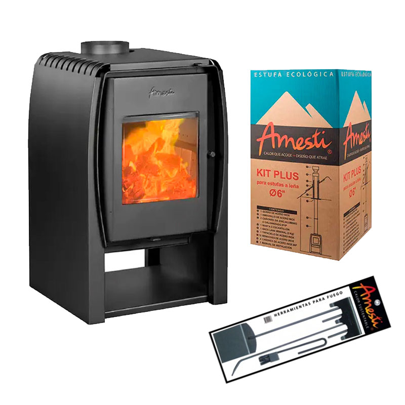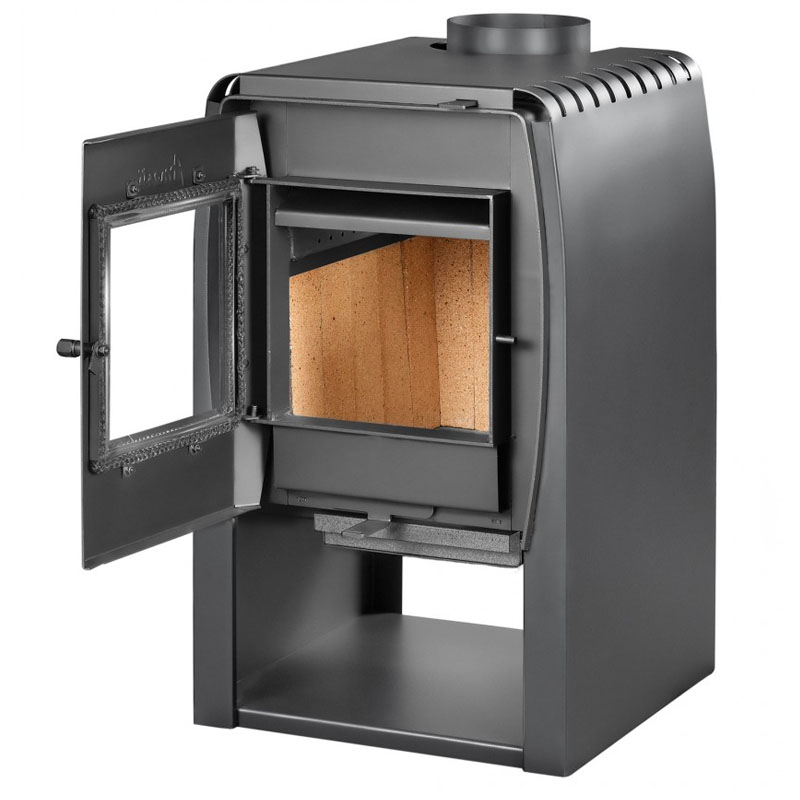 Compartimiento para lena con base Cenicero Inyector de Aire : Acelera el encendido y estabiliza la combustion lenta reduciendo las emisiones contaminantes