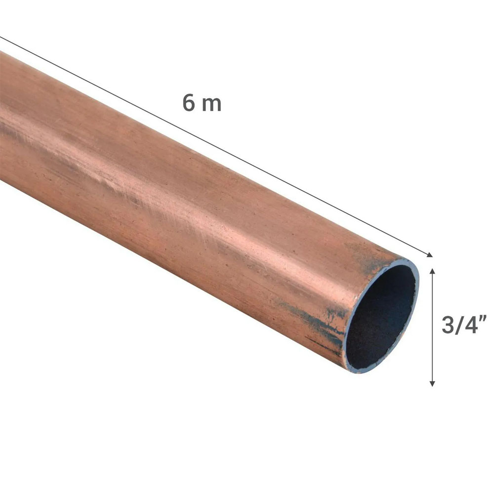 La cañería de cobre 3/4” Tipo M en tira recta de 6 metros es una excelente opción para instalaciones de agua potable, redes sanitarias y sistemas hidráulicos. Fabricada con cobre de alta calidad, garantiza resistencia, seguridad y larga vida útil.