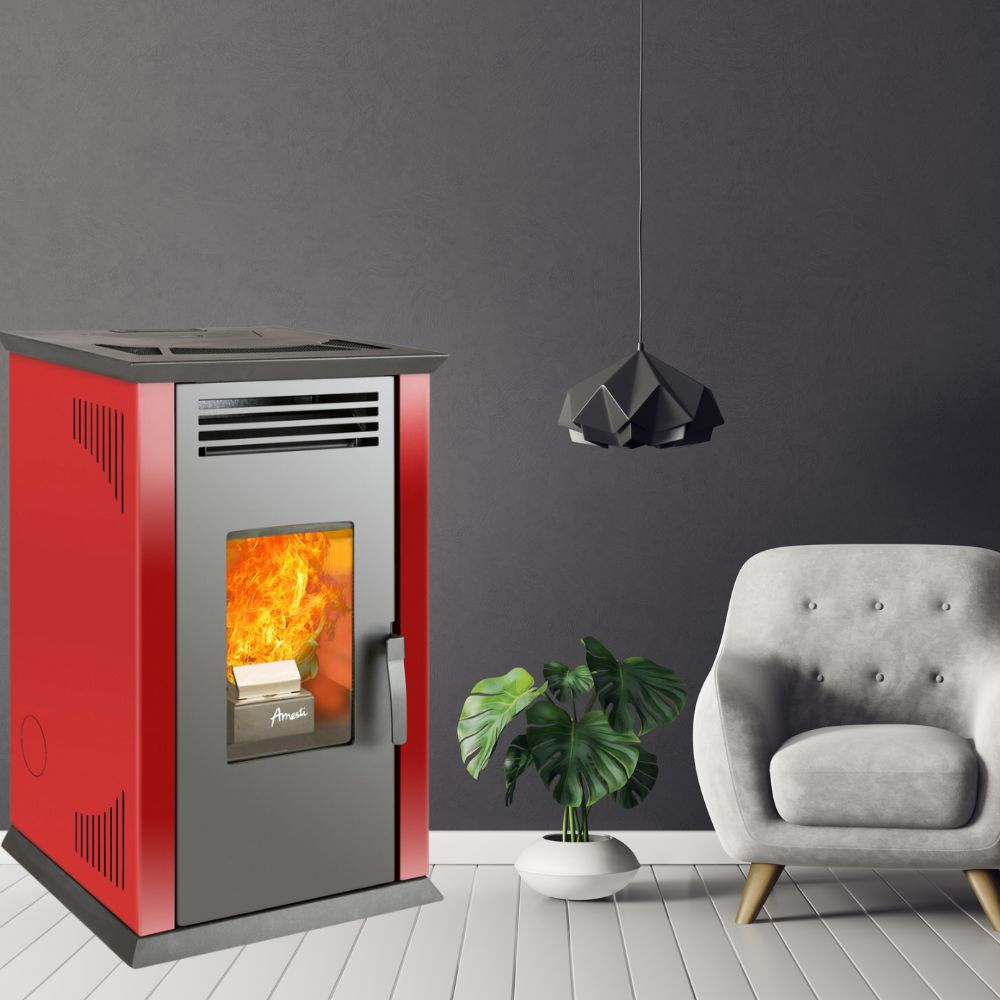 La Estufa a Pellet Amesti Italy 8100 Plus Roja tiene una eficiencia térmica del 87% y maximiza la combustión de manera más eficiente. El color rojo aporta un toque elegante a cualquier espacio. La ventana termo cerámica te da la oportunidad de disfrutar de una vista encantadora del fuego.