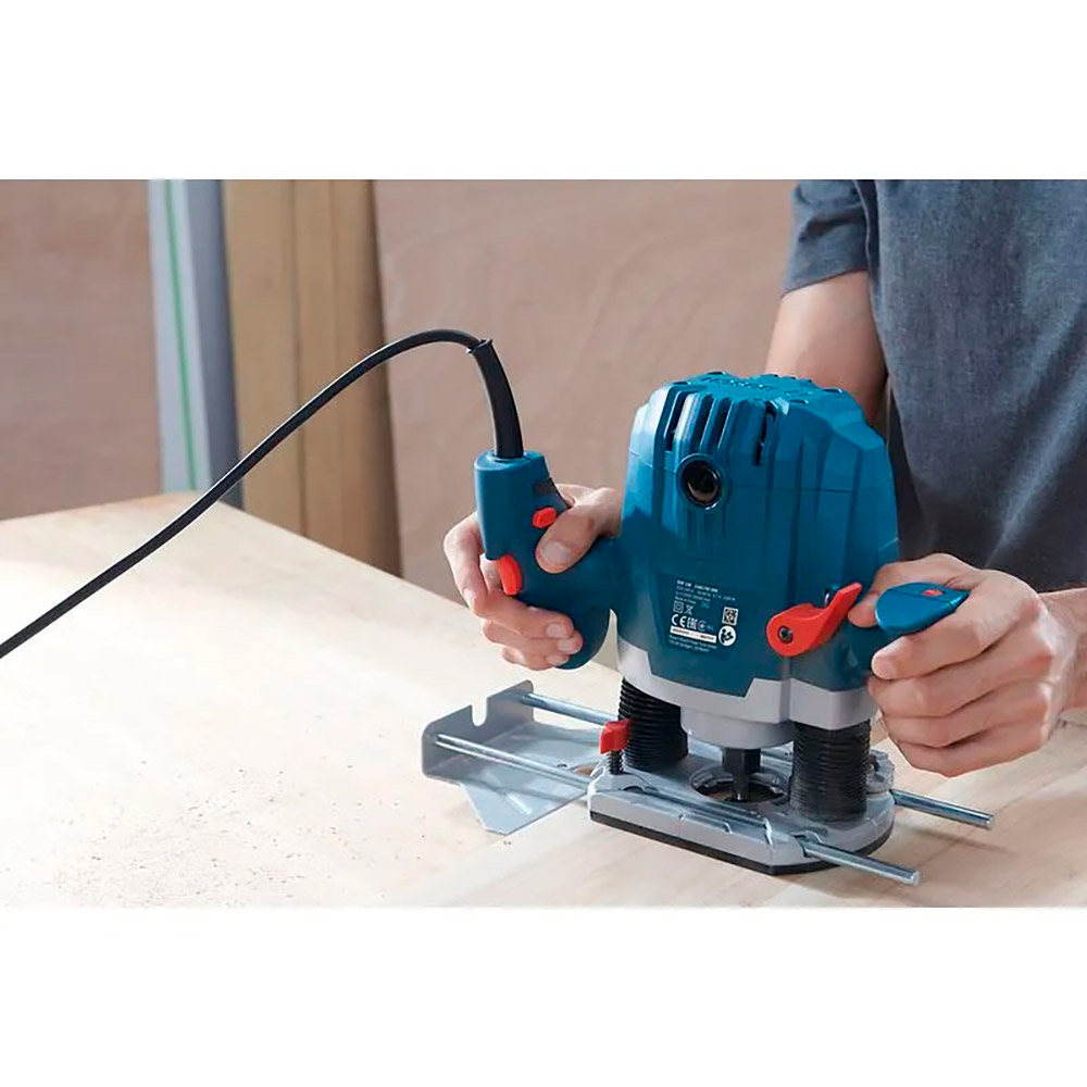 Datos adicionales: Velocidad de giro en vacío 11.000 – 28.000 rpm. Potencia absorbida 1,300 W. Soporte para puntas de atornillar 6,0 mm. Diámetros de fresa pequeños 40 mm. Recorrido máx. de la fresadora 55 mm. Peso 3.5 kg. Dimensiones de herramienta (anchura) 152 mm. Dimensiones de herramienta (longitud) 272 mm. Dimensiones de herramienta (altura) 277 mm