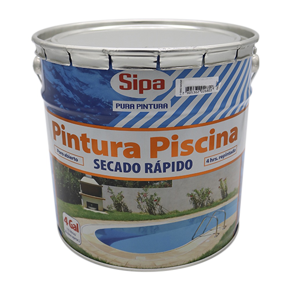 CARACTERISTICAS La Pintura para piscina secado rápido Sipa es un producto de pintura y accesorios fabricado para darle un buen acabado a todo tipo de piscinas y estanques de agua después de haber sido impermeabilizados. Tras su aplicación y secado, es de terminación satinado para mejor presentación y es resistente a los productos químicos generalmente utilizados para mantención de las piscinas. Tiene la ventaja de que es una pintura de secado rápido, por lo que si tienes una nueva piscina que quieres estrenar, la podrás llenar tras solo 36 horas de haberla pintado. Puedes utilizarla con tres capas para mejores resultados y basta con que apliques dos como mantención. Es de fácil aplicación con pistola, brocha o rodillo. La presentación es de un galón en envase de metal, con un asa para que la puedas transportar con facilidad. El galón tiene un rendimiento promedio de entre 30 y 35 metros cuadrados, lo que te permite estimar la cantidad total necesaria de acuerdo con el tamaño de tu piscina. Por ser de secado rápido, la siguiente mano la puedes aplicar después de 4 horas de haber terminado la anterior.