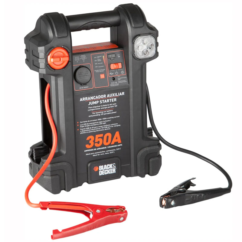 El Arrancador Auxiliar Automóvil 350 Amp Black+Decker JS350S-B2C es la solución práctica y confiable que todo conductor debería tener a mano. Diseñado para sacarte de imprevistos, este potente partidor portátil entrega hasta 350 amperes de arranque, proporcionando la energía necesaria para encender la mayoría de vehículos de pasajeros con batería de 12V en cuestión de minutos. Ideal para emergencias, viajes largos o simplemente para mayor tranquilidad en el día a día, combina rendimiento, seguridad y comodidad en un equipo compacto y fácil de transportar.