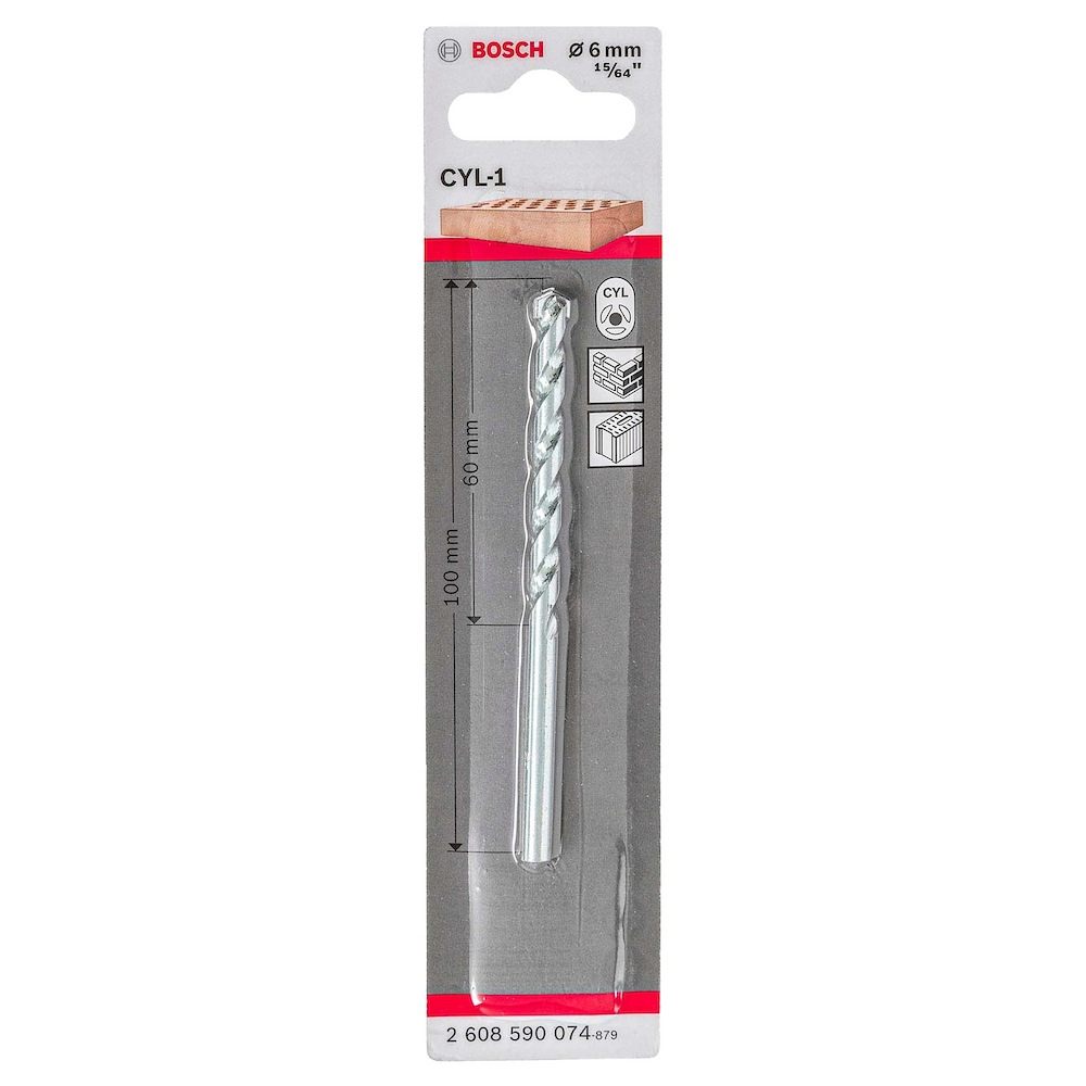 La broca para concreto Bosch 6X60X100 Blister (2608590074) es una herramienta de la línea CYL-1 optimizada para perforar mampostería, con un diseño que maximiza la eficiencia y durabilidad.