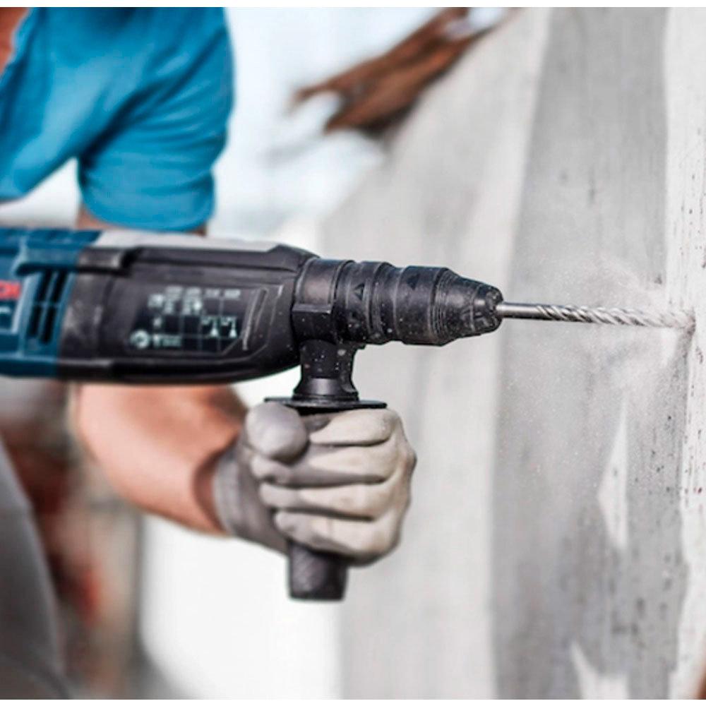 El cuerpo de la broca incorpora una geometría de cuatro espirales pensada para evacuar el polvo con rapidez. Esto reduce la fricción, mejora la velocidad de perforación y prolonga su vida útil. Gracias a su diseño reforzado, la broca puede atravesar accidentalmente varillas de acero sin atascarse ni romperse, lo que la hace especialmente confiable en trabajos de construcción y remodelación.
