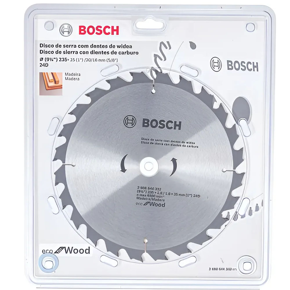 El Disco Sierra Bosch Eco 235 mm 9" x 24D es una hoja de sierra circular pensada para cortes en madera y materiales derivados, diseñada para brindar un rendimiento sólido y confiable en trabajos de carpintería, construcción y bricolaje. Con un diámetro de 235 mm (9 1/4") y 24 dientes de carburo, este disco ofrece cortes rápidos y eficientes, siendo ideal para cortar madera maciza, tableros, MDF, contrachapados y otros materiales similares. Su cuerpo —fabricado en acero endurecido— garantiza estabilidad dimensional, reduciendo la deformación incluso tras uso prolongado.