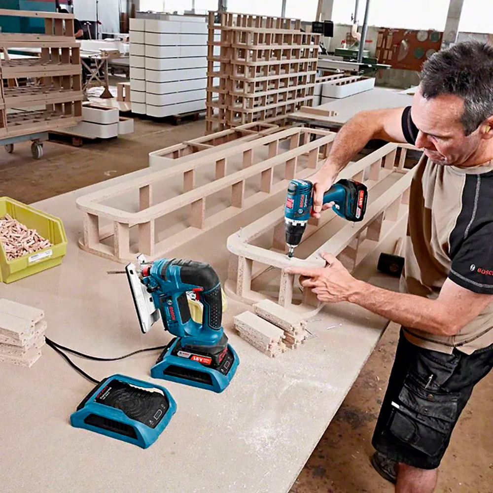 La batería de iones de litio Bosch GBA 18V con autonomía de 4,0Ah, tiene un gran desempeño en las aplicaciones que exigen mayor corriente y mayor tiempo de uso; la carcasa da batería con tecnología Coolpack de última generación, direcciona el calor hacia fuera de la batería aumentando la vida útil, además, es 100% compatible con las herramientas y cargadores 18V Bosch. Por otro lado, el Cargador GAL 1880 CV Bosch tiene una carga rápida y es BIVOLT, además de ser compatible con 100% de las baterías 18V Bosch. Este kit incluye 2 baterías GBA 18V 4,0 Ah y 1 cargador GAL 1880 CV