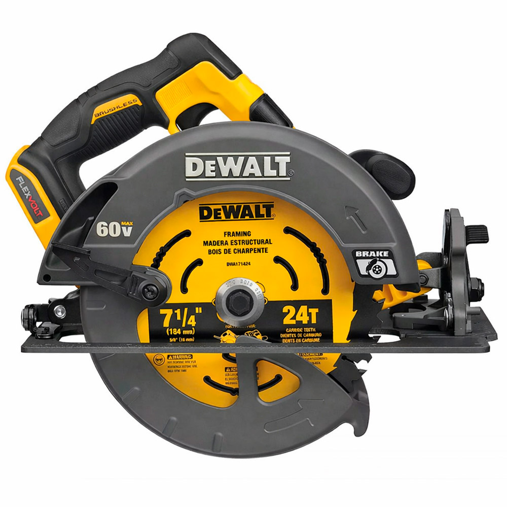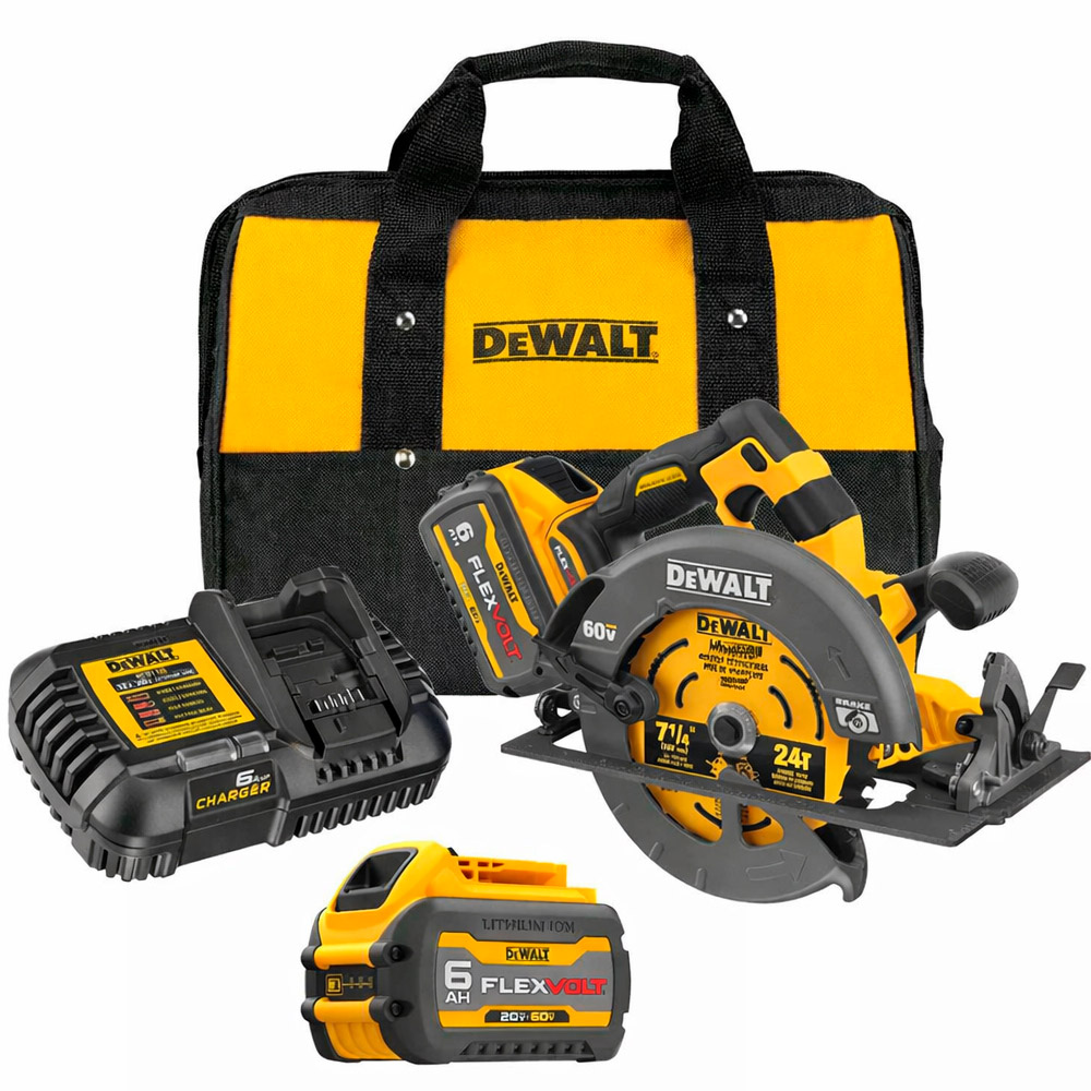 Kit Sierra Circular 7 1/4" + 2 Baterías + 1 Cargador + Accesorios DEWALT DCS578T2-B2 INCLUYE: • 1 Sierra Circular 7-1/4" 1600W DEWALT DCS578B. • 2 Batería Flexvolt 60V DEWALT DCB606 • 1 Cargador DCB1106. • 1 Bolso porta herramientas. • 1 Disco de sierra 7-1/4" (184mm) de 24 dientes DW3178 ------------------------------------------------------------ SIERRA CIRCULAR 7 1/4" DCS578B • Voltaje: 60V MÁX. • Tecnología FLEXVOLT: Poder y duración sin cable. • Potencia: 1600W. • Velocidad sin carga: 5800 RPM. • Diámetro de la hoja: 7-1/4" (184mm). • Capacidad de bisel: 0 a 57°. • Tamaño del eje: 5/8" (15,9mm). • Profundidad de corte 45°: 2" (50.8mm). • Profundidad de corte 90°: 2-9/16" (67mm). • Luz Led: Sí. • Ajustes sin herramientas: para el control de profundidad y bisel. • Freno electrónico: detiene la hoja rápidamente para mayor seguridad. • Peso: 3.6kg. • Sierra circular de corte general, corte transversal y biselado para madera y otros materiales de construcción. • Motor sin carbones de alto par para mayor durabilidad y potencia para el corte del sitio de trabajo y materiales de carpintería. • Construcción de bloque estable para funcionamiento con baja vibración y larga vida útil.