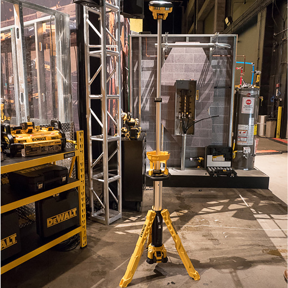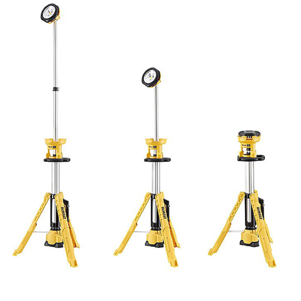 La luz trípode inalámbrica de DEWALT 20V MAX * ilumina su espacio de trabajo en las condiciones de trabajo más difíciles. Está construido para una durabilidad increíble en uso, almacenamiento o transporte. Elimina el peligroso calor del halógeno. La tecnología LED de vanguardia proporciona un tiempo de ejecución extendido y luz blanca natural La configuración de brillo variable de hasta 3000 lúmenes le permite personalizar la iluminación para su área de trabajo. El diseño compacto con asa de transporte proporciona fácil portabilidad y se instala en segundos. Luz directa giratoria y giratoria donde la necesita. El LED blanco natural proporciona una visibilidad precisa del color, una larga vida útil y se mantiene fresco al tacto. Tres configuraciones de brillo para personalizar la iluminación del espacio de trabajo. Clasificación IP-55 para resistencia al clima y al polvo LUMENS 1,001 – 3,000