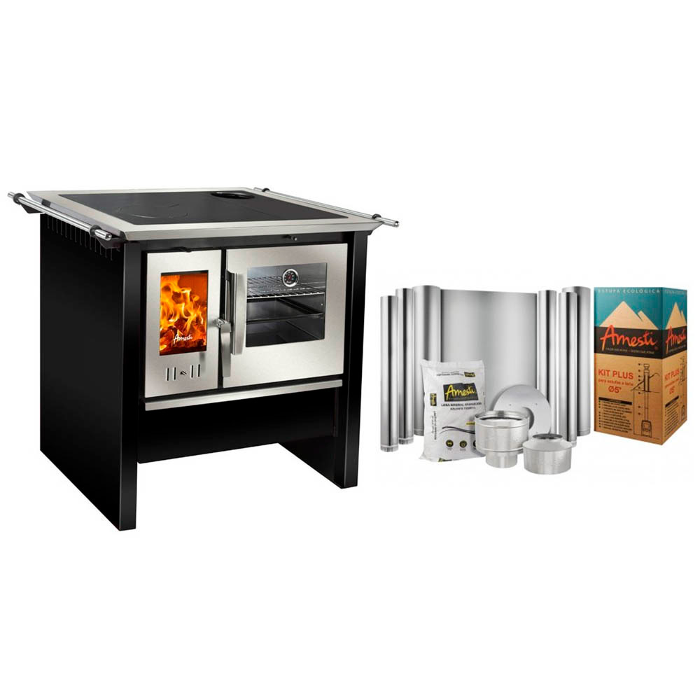 La Cocina Allegra Amesti es una belleza con increíbles terminaciones. Esta cocina tiene funciones de calefacción, cocción, y horneado con una placa de hierro laminado para mayor transferencia de calor a los alimentos. Mostrando una huella de carbono neutral, esta cocina utiliza la combustión lenta de leña, en lugar del uso de gas o petróleo, para contribuir a reducir el calentamiento global.