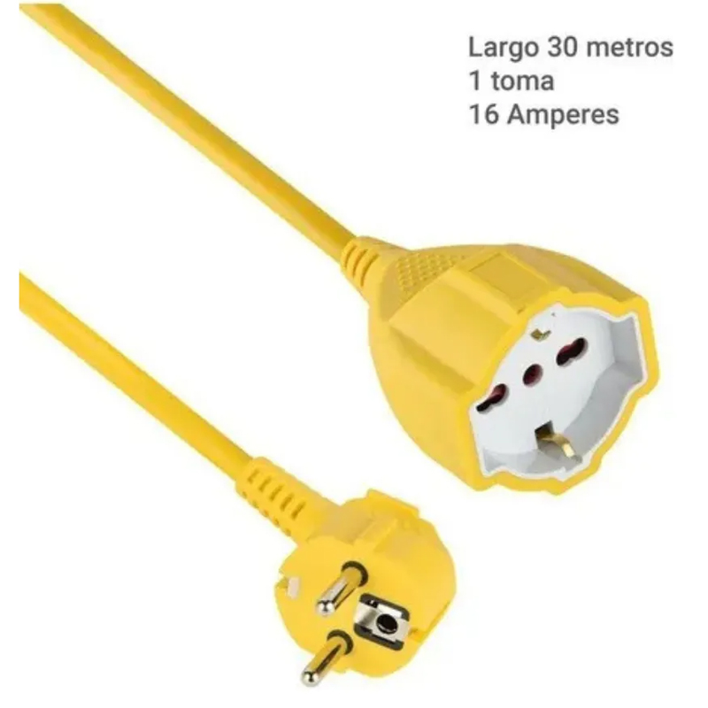 Fabricado en color amarillo para alta visibilidad y seguridad en el área de trabajo. Soporta una capacidad de hasta 16A y 3500W, ideal para herramientas eléctricas, maquinaria y equipos de uso continuo. Su enchufe tipo Schuko con puesta a tierra (2P+T) garantiza una conexión segura y estable.