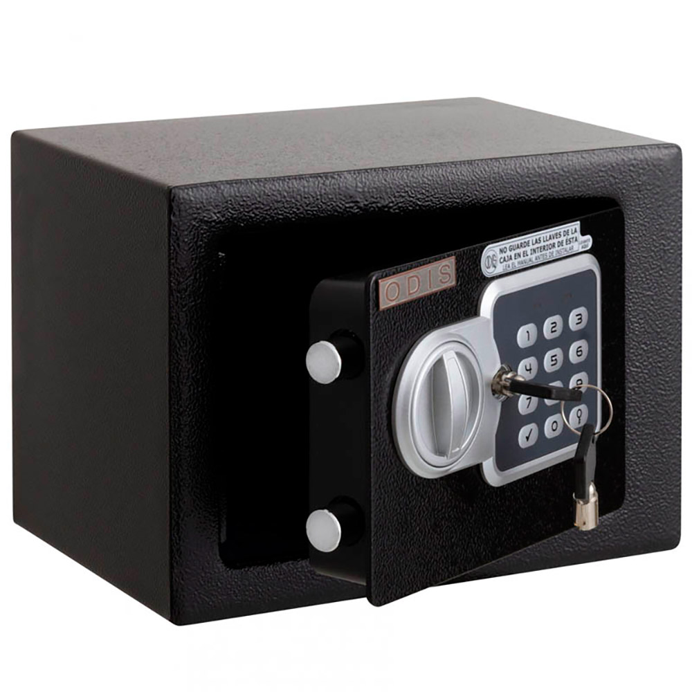 La caja residencial Odis de 4,2 litros en color negro es tu aliada de seguridad para resguardar tus pertenencias más valiosas. Con su pantalla y teclado intuitivo, brinda un acceso fácil y seguro. Su cierre eléctrico y llave de emergencia te proporcionan tranquilidad en todo momento. Además, con su resistente construcción de paredes y puertas de acero de 3 mm, bisagras reforzadas y sistema de anclaje, te garantiza protección sólida. Con capacidad de 4,2 litros, este modelo mini es ideal para espacios residenciales, ofreciendo seguridad sin compromisos.