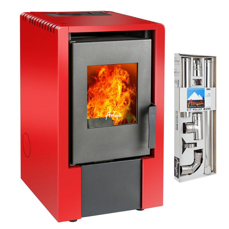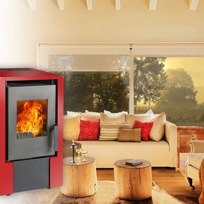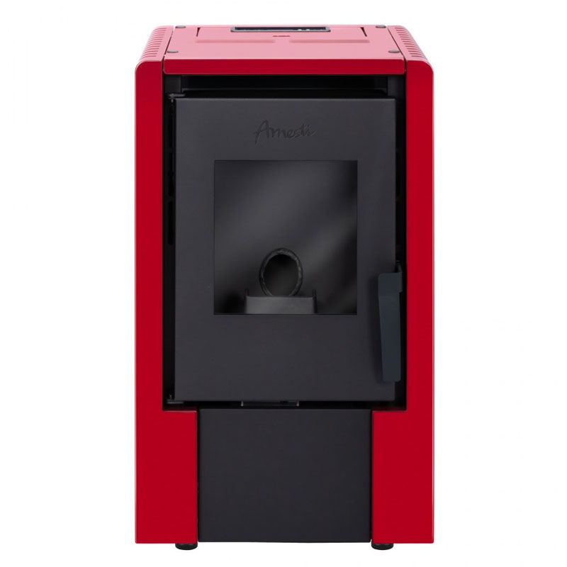 La Estufa a Pellet Amesti Italy 6100 Rojo Italiano tiene una eficiencia térmica del 86%, maximizando la combustión y aprovechamiento del combustible para entregar calor constante y eficiente.