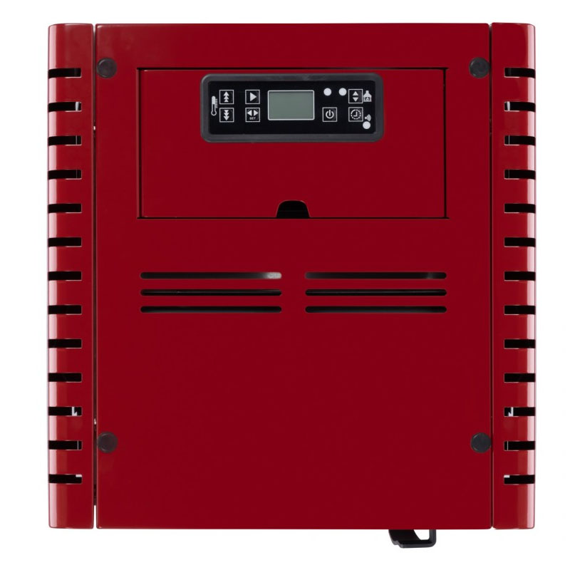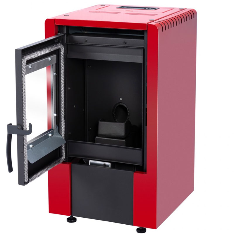 Diseño elegante y visión del hogar: El acabado rojo italiano aporta un aspecto exclusivo y distintivo que realza cualquier ambiente. Una ventana de vidrio termo cerámico permite ver el fuego, creando un punto focal cálido y acogedor en la habitación.