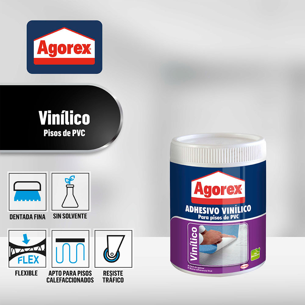 Agorex Adhesivo Vinílico 900 g es el pegamento ideal para tus proyectos de carpintería, manualidades y reparaciones en el hogar. Su fórmula de alta calidad ofrece una excelente adherencia en materiales porosos como madera, cartón, papel y telas. Seca de manera transparente, es fácil de aplicar y limpiar, y garantiza un acabado profesional en cada uso. Perfecto para bricolaje, trabajos escolares y uso profesional.
