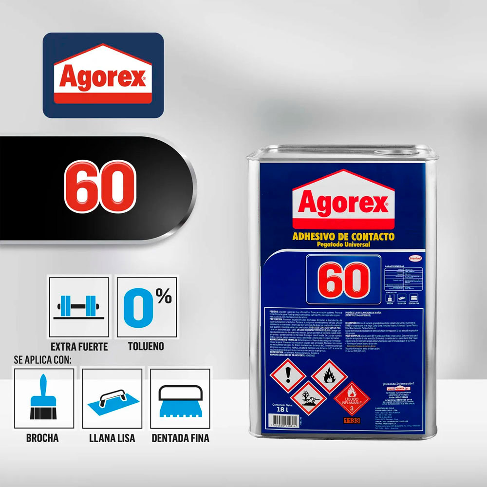 El Agorex-60 en lata de 18 L es el aliado perfecto para trabajos exigentes que requieren máxima adherencia, resultados rápidos y un acabado profesional. Su fórmula de alto rendimiento —libre de tolueno— entrega una unión inmediata, resistente y duradera, ideal para quienes buscan confiabilidad en cada proyecto.