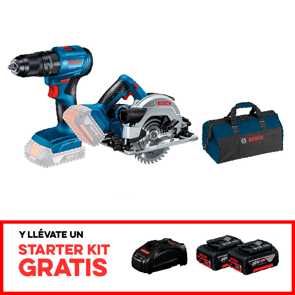 | ¡PACK PROFESIONAL BOSCH CONSTRUCCIÓN + CARPINTERÍA! SIERRA CIRCULAR INAL. GKS 18V-57 +TALADRO PERC/ATORNIL 18V GSB 185 |