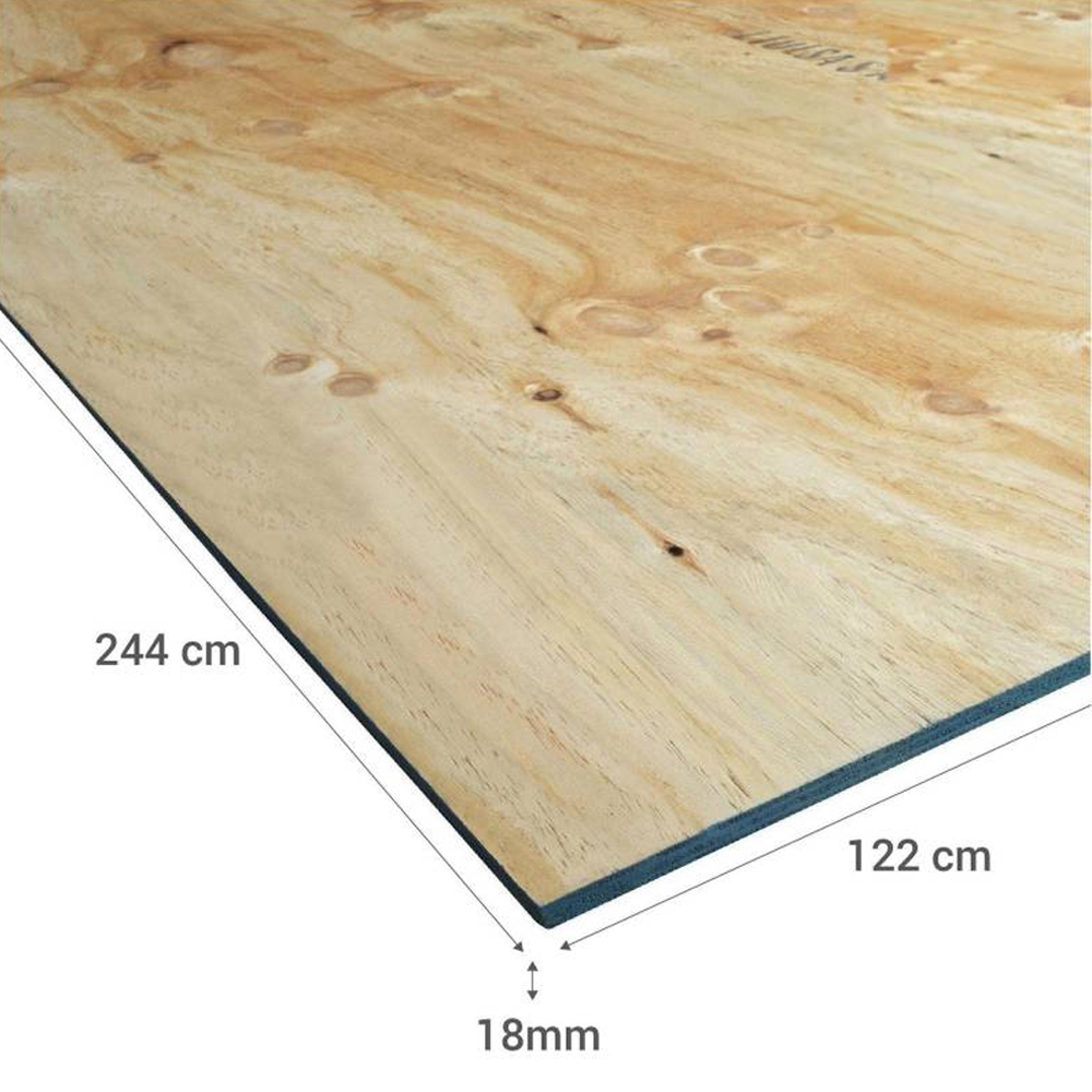 Terciado estructural de alta resistencia fabricado por Arauco, ideal para aplicaciones exigentes en construcción. Cuenta con un espesor de 18 mm y dimensiones de 1,22 x 2,44 metros, lo que permite una excelente cobertura por plancha. Está elaborado en pino radiata con adhesivo fenólico, lo que lo hace apto para uso estructural bajo condiciones de humedad moderada. Sus cantos están pintados de color azul, característica distintiva de este tipo de tableros. Posee una cara tipo C y una trascara tipo D, sin lijar, adecuada para estructuras no visibles. Su peso aproximado es de 29 kg por plancha, ofreciendo gran estabilidad y durabilidad.
