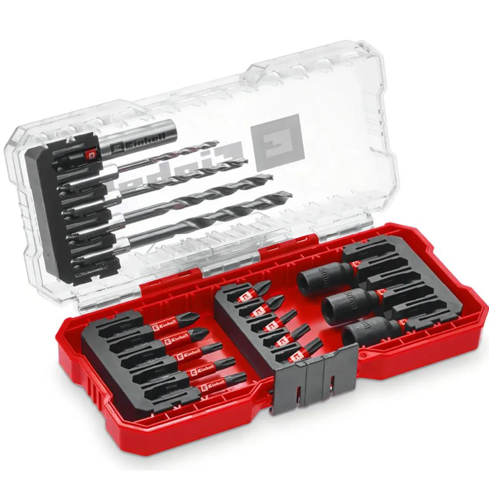 Descubre el Set de 18 Piezas de Brocas y Puntas de Impacto Einhell, un conjunto de accesorios de alta calidad diseñado para satisfacer todas tus necesidades de perforación y atornillado. Este completo set incluye 4 brocas para metal HSS de diferentes tamaños (3/4/5/6 mm) y un práctico portapuntas magnético que facilita el cambio de herramientas. Además, cuenta con 3 vasos de 6/8/10 mm con racor de 1/4", ideales para trabajos generales. Las 10 puntas de 25 mm y 50 mm, fabricadas en aleación de acero reforzado S2, ofrecen durabilidad y resistencia, abarcando las medidas PH2, PZ2, T15, T20 y T25. Todo se presenta en una práctica caja de almacenamiento Einhell S-CASE, que asegura que tus herramientas estén organizadas y siempre a mano. Este set es perfecto para aplicaciones en metal, madera y concreto, garantizando un rendimiento excepcional en cada proyecto.