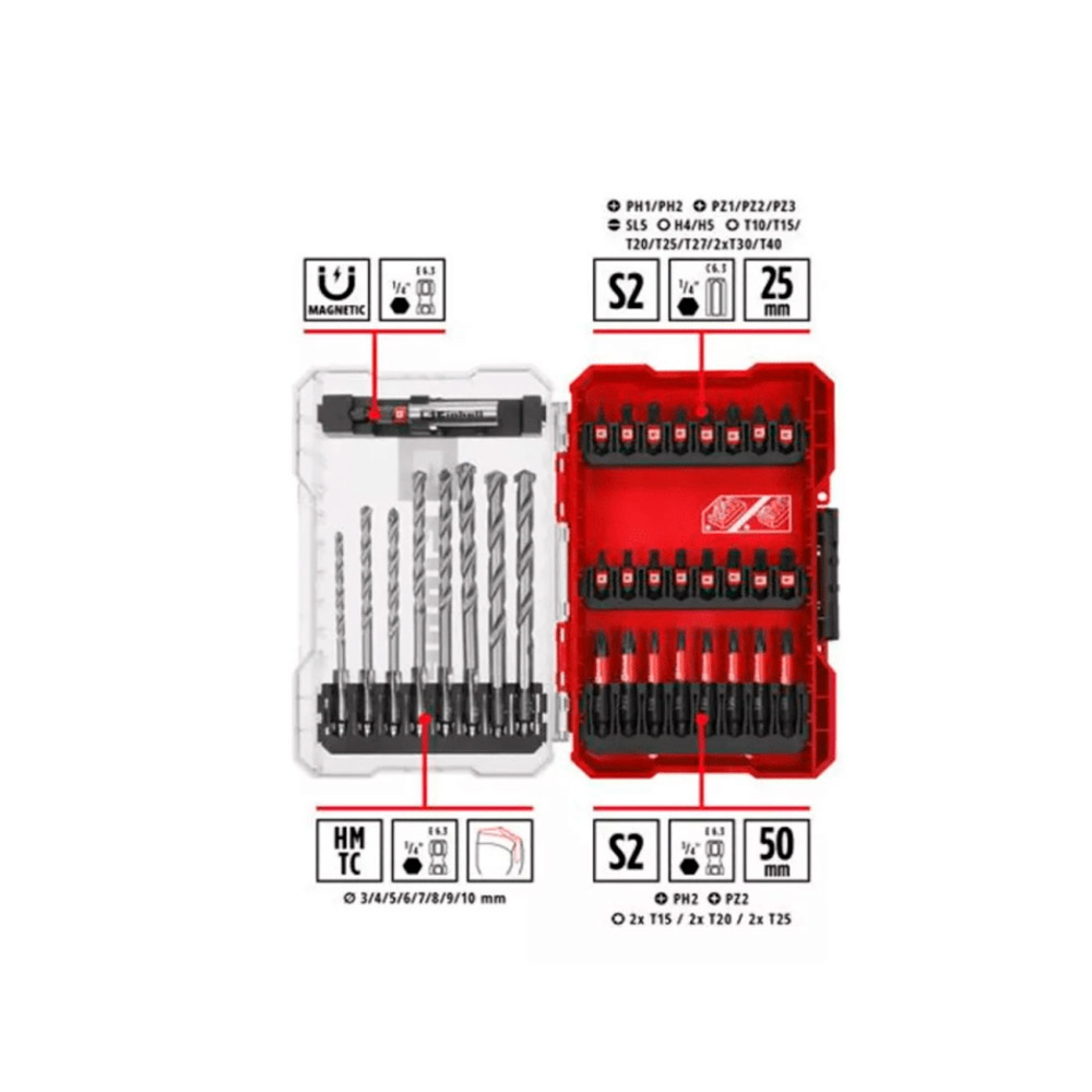 - Montaje sencillo: El set incluye un portapuntas magnético que facilita el montaje y cambio de las brocas en soportes de 1/4", compatible con sistemas autoblocantes populares.