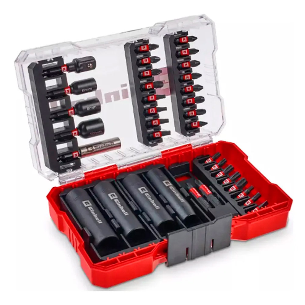 El juego de 35 puntas M-CASE de Einhell ofrece una amplia selección de puntas de impacto de alta calidad, adecuadas para trabajos de atornillado precisos y exigentes.