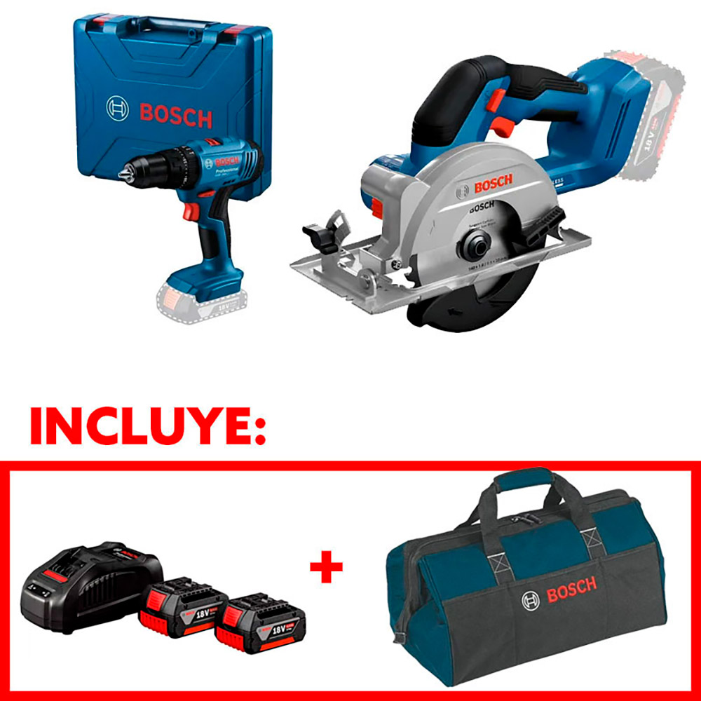 TALADRO PERCUTOR/ATORN. 18V GSB 185-LI + SIERRA CIRCULAR INAL. GKS 18V-51 + BOLSO PORTA HERRAMIENTA CON 2 BATERIAS Y CARGADOR