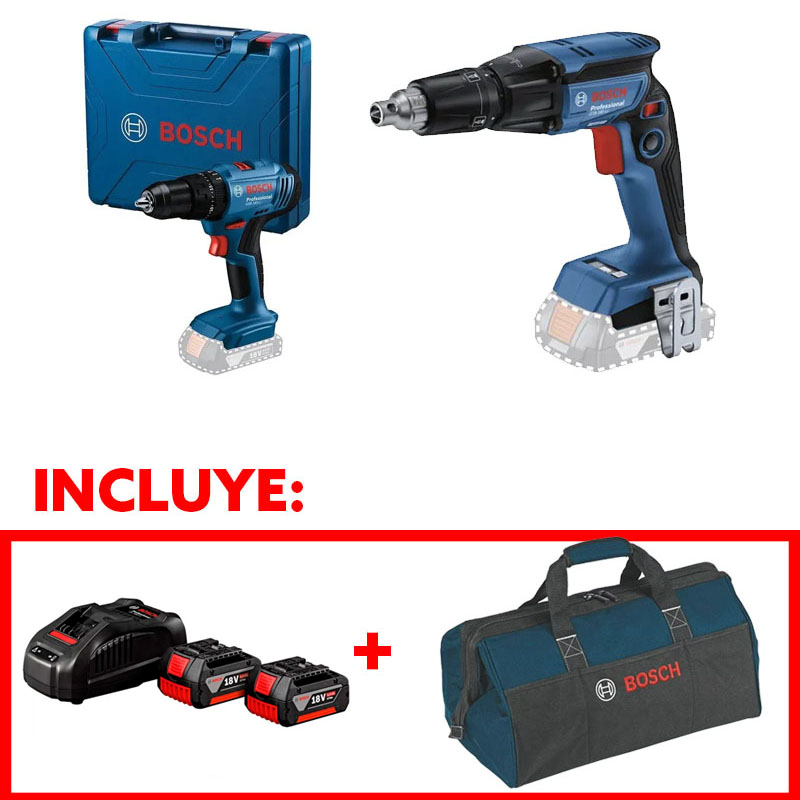 TALADRO PERCUTOR/ATORN. 18V GSB 185-LI + ATORNILLADOR DRYWALL INAL GTB 185 + BOLSO PORTA HERRAMIENTA CON 2 BATERIAS Y CARGADOR