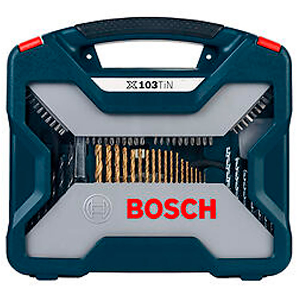 El Bosch X-Line 103 piezas es un set multifuncional diseñado para tareas de taladrado y atornillado en distintos materiales (metal, madera, mampostería, plástico duro, etc.). El kit incluye brocas, puntas y herramientas adicionales, empaquetadas en un maletín resistente y portátil que facilita su transporte y organización.