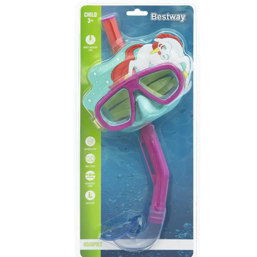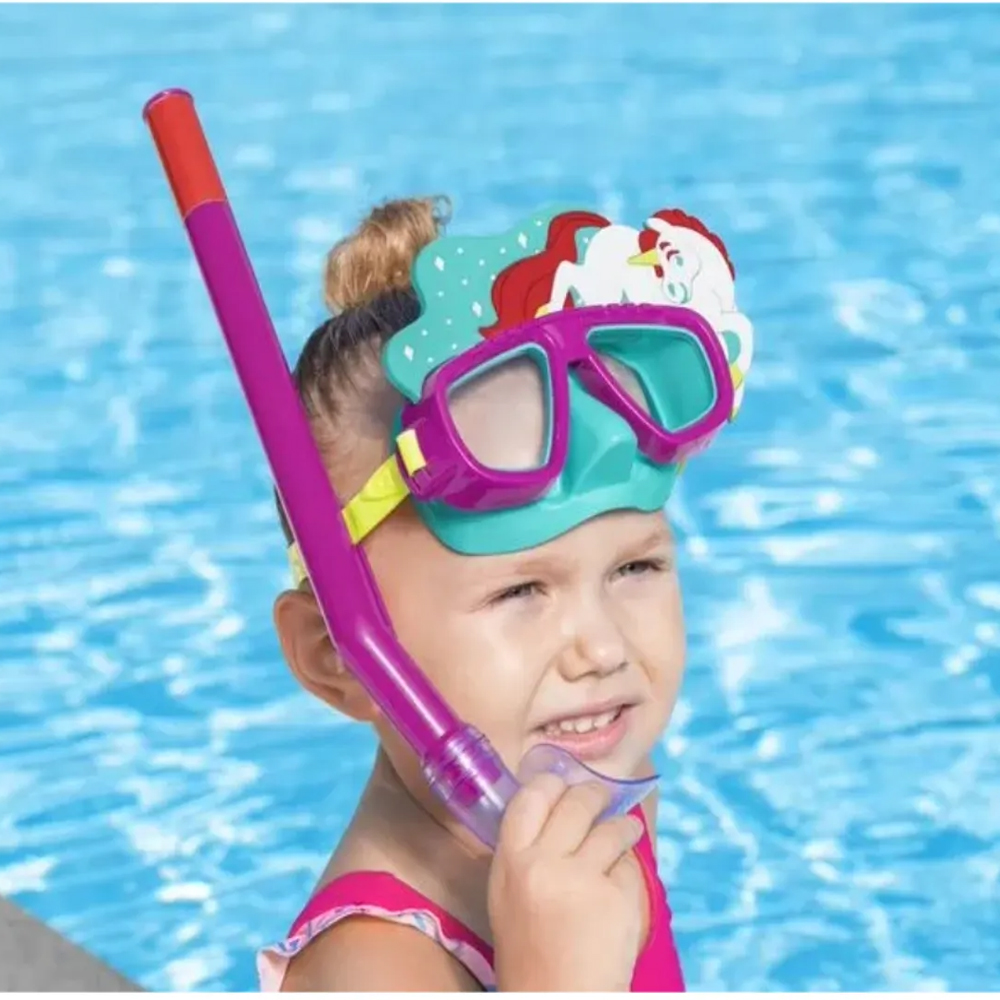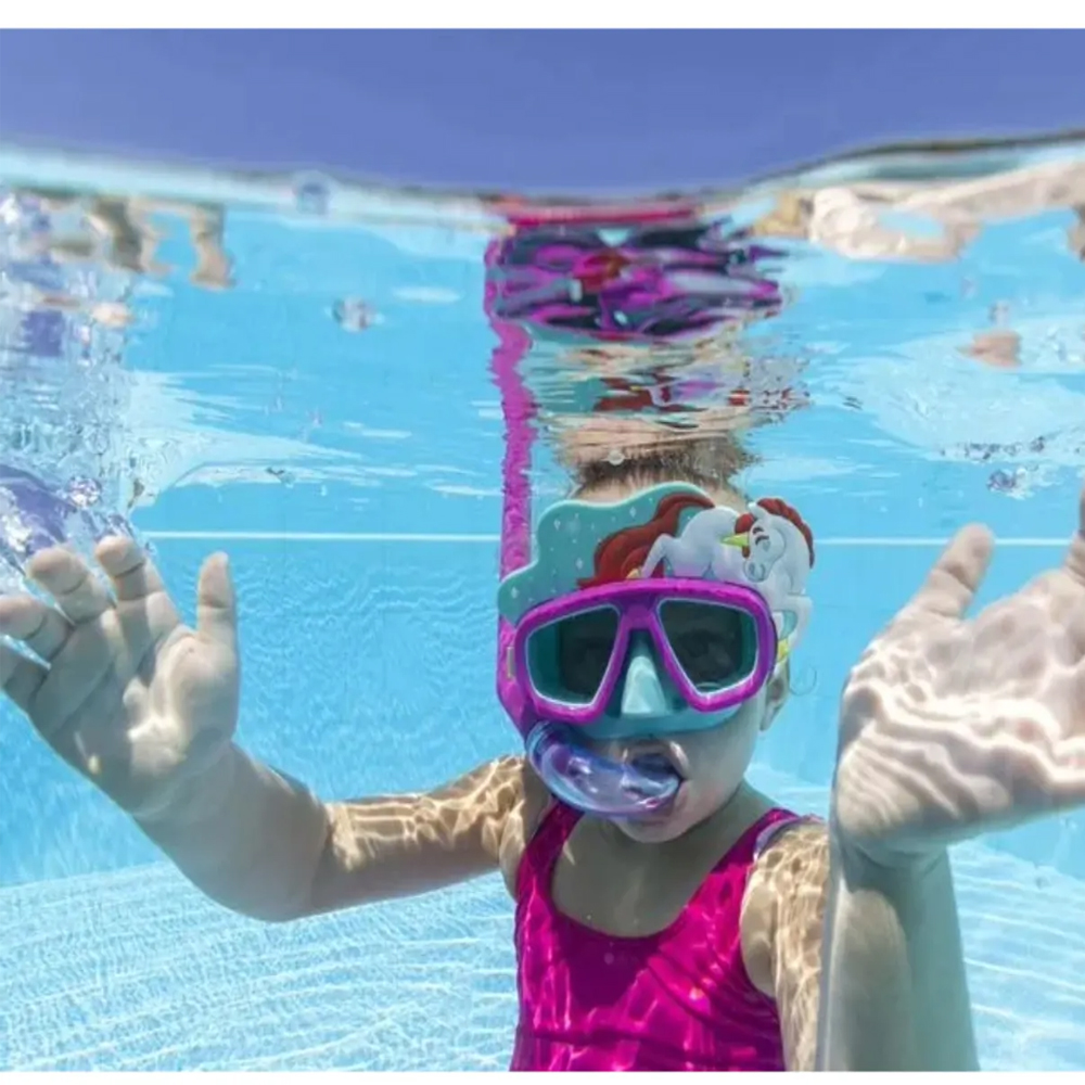 El Set de Buceo Animal Bestway es ideal para niños de 3 a 8 años. Equipado con lentes de policarbonato resistentes a impactos y revestidos con protección UV, ofrece seguridad y comodidad bajo el agua.