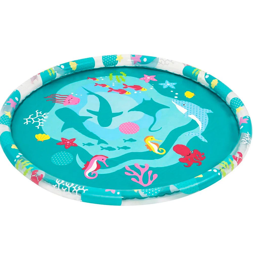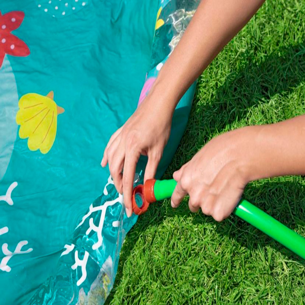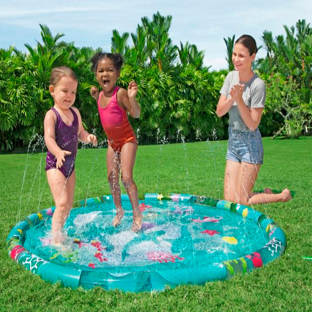 Alfombra Splash Pad Bestway Infantil, Convierte tu jardín en un paraíso acuático con la Alfombra Splash Pad Bestway Underwater Utopi. Diseñada para niños desde 2 años, esta divertida alfombra con rociadores permite saltar, chapotear y refrescarse de forma segura. Solo conecta una manguera de jardín y disfruta de un efecto de fuente que mantiene a los pequeños activos mientras se divierten. Su diseño colorido con temática marina estimula la imaginación y convierte cualquier día de calor en una experiencia refrescante para toda la familia. Fácil de instalar, inflar y guardar, es la opción perfecta para juegos interactivos al aire libre.