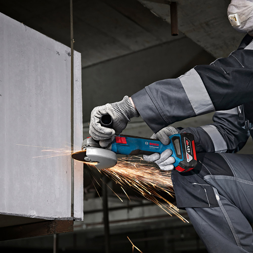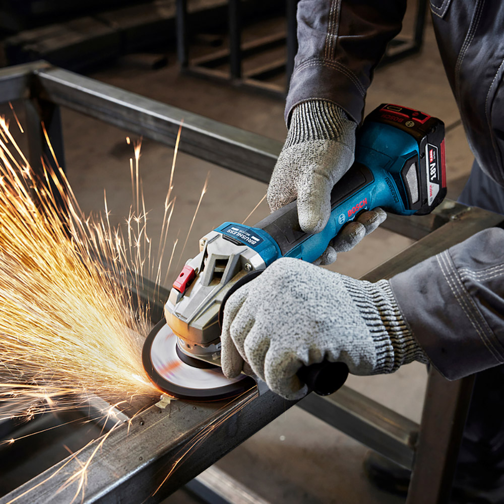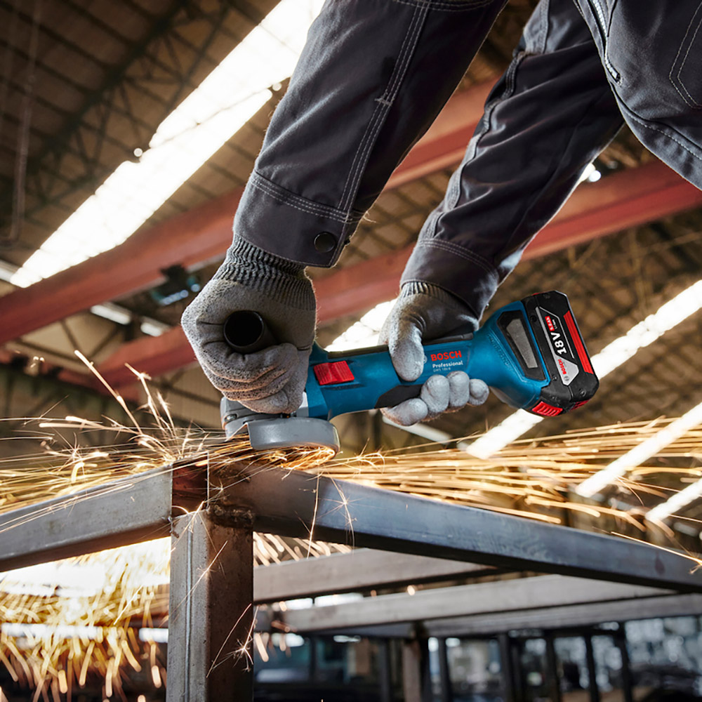 La Bosch GWS 18V-8 es una amoladora anngular profesional a batería con disco de 125 mm, ideal para corte y desbaste de metal, acero, piedra u hormigón. Su diseño equilibrado garantiza un control preciso, rendimiento constante y comodidad durante toda la jornada.
