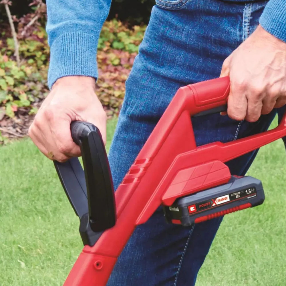 a orilladora inalámbrica GC-CT 18/24 11 Li P-Solo de Einhell es la aliada perfecta para mantener tu jardín siempre impecable sin esfuerzo y con total libertad de movimiento. Diseñada para trabajar sin cables y con un peso ligero, permite llegar cómodamente a bordes, esquinas y zonas difíciles donde una cortadora tradicional no puede acceder. Su potente motor, junto con la tecnología Power X-Change (compatible con todas las baterías de la familia Einhell), ofrece un rendimiento constante y eficiente en cada uso.