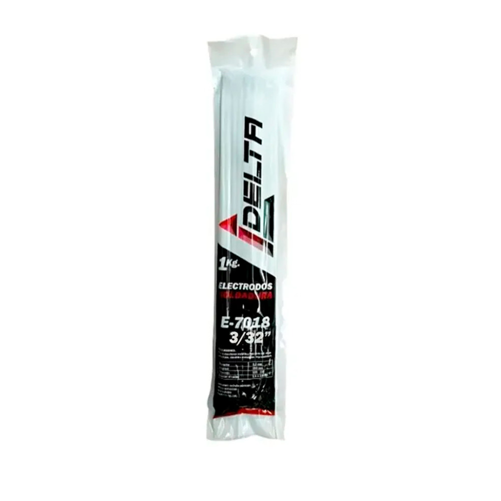 El electrodo 7018 de 1/8" (3.2 mm) en bolsa de 1 kg de la marca Delta es un consumible de soldadura de alto rendimiento, clasificado bajo la norma AWS A5.1 como E7018. Se caracteriza por su bajo contenido de hidrógeno, lo que lo hace ideal para aplicaciones críticas donde la integridad de la soldadura es fundamenta