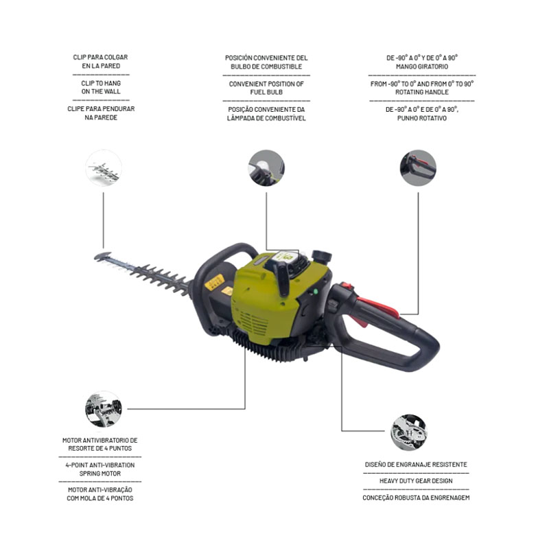 El cortasetos a gasolina BONHOEFFER BON-P-HT23 está diseñado para quienes buscan alto rendimiento, autonomía total y cortes precisos en el mantenimiento de setos, arbustos y cercos vivos. Gracias a su potente motor de 1.2 HP, ofrece un desempeño eficiente incluso en vegetación densa, sin depender de cables ni conexiones eléctricas.