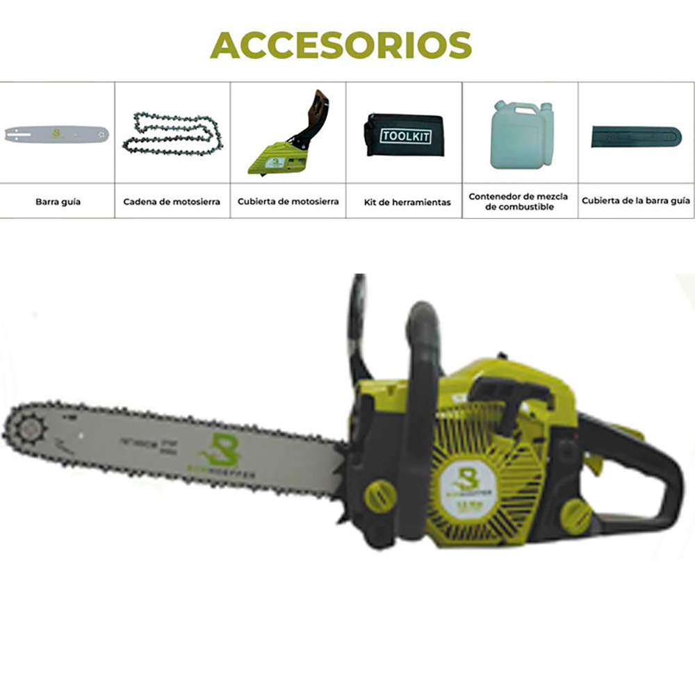 Su barra de 16 pulgadas brinda un equilibrio perfecto entre capacidad de corte y maniobrabilidad, permitiendo trabajar con mayor control y seguridad incluso en espacios reducidos. Al funcionar a gasolina, garantiza autonomía y libertad de movimiento, sin depender de cables ni conexiones eléctricas, lo que la hace especialmente práctica para trabajos al aire libre. Su diseño ergonómico facilita el agarre y reduce la fatiga durante el uso prolongado, mejorando la experiencia del usuario en cada jornada.
