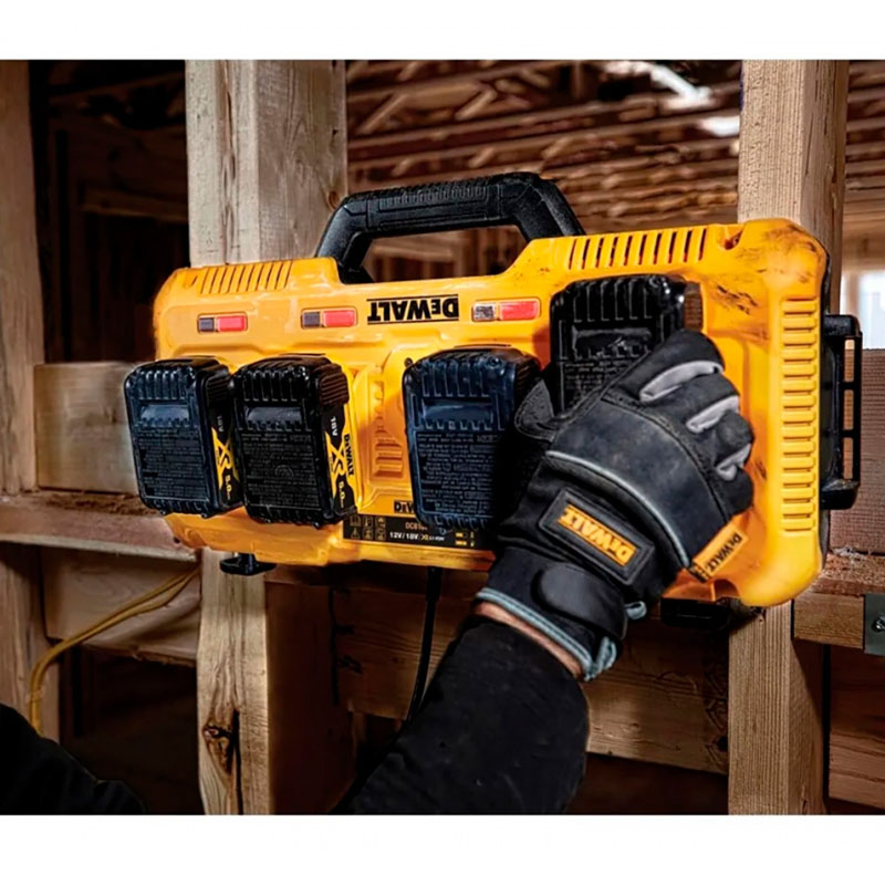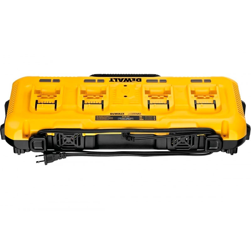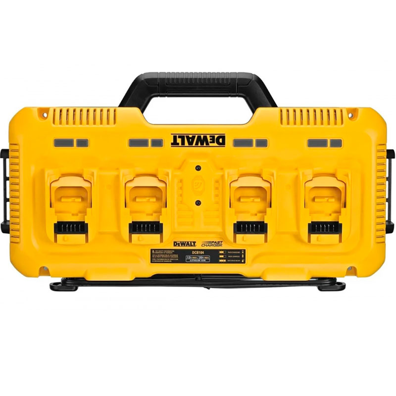 El Cargador Múltiple 12V–14V–18V–60V MAX 8.0Ah 4 Puertos DEWALT DCB104-B2 es la solución ideal para maximizar la productividad en obra y taller. Permite cargar hasta cuatro baterías simultáneamente, optimizando tiempos y manteniendo siempre tus herramientas listas para trabajar. Compatible con múltiples plataformas DEWALT, ofrece carga inteligente y eficiente, ideal para equipos profesionales que utilizan varias baterías durante la jornada.