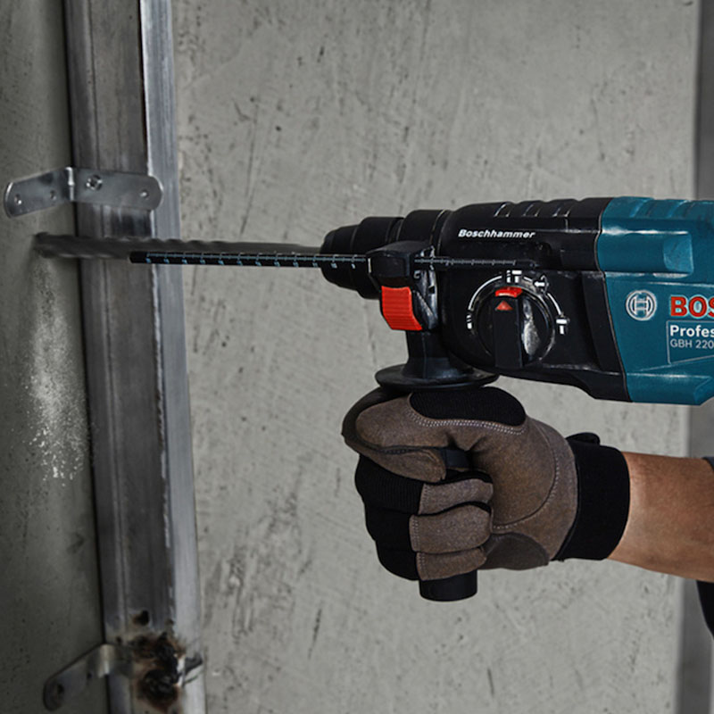 - Diámetro de perforación en hormigón, brocas de percusión: 4 – 22 mm