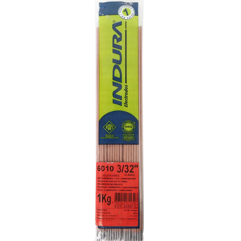 El electrodo Indura E6010 3/32” AWS A5.1 está diseñado para trabajos que exigen alta penetración, excelente control del arco y máxima confiabilidad en terreno. Gracias a su revestimiento celulósico sódico, genera un arco potente y concentrado que permite una penetración profunda, ideal para pases de raíz y uniones críticas en acero al carbono.